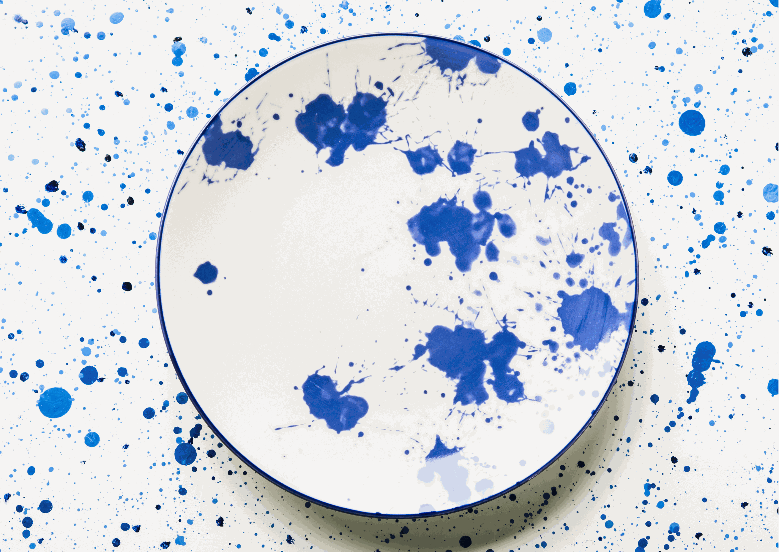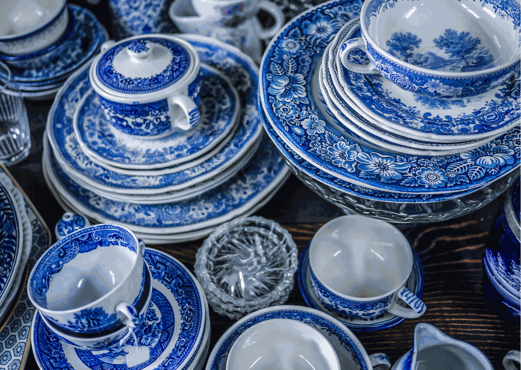 Unterglasur-Kobalt-Dekore werden gern mit Ätzgolddekoren kombiniert.