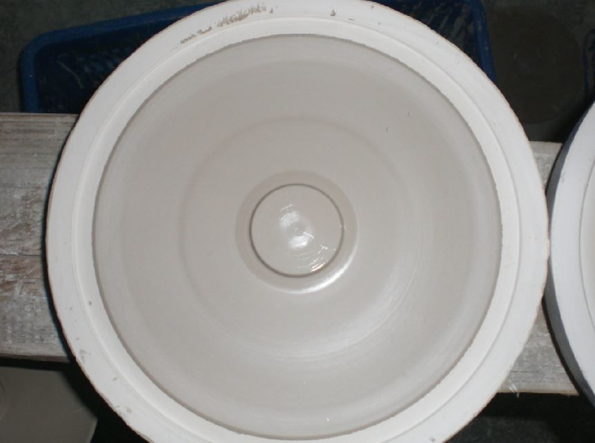 Beim Einformen wird die Masse in Gipsformen eingedreht (Tassen, Schüsseln etc.).