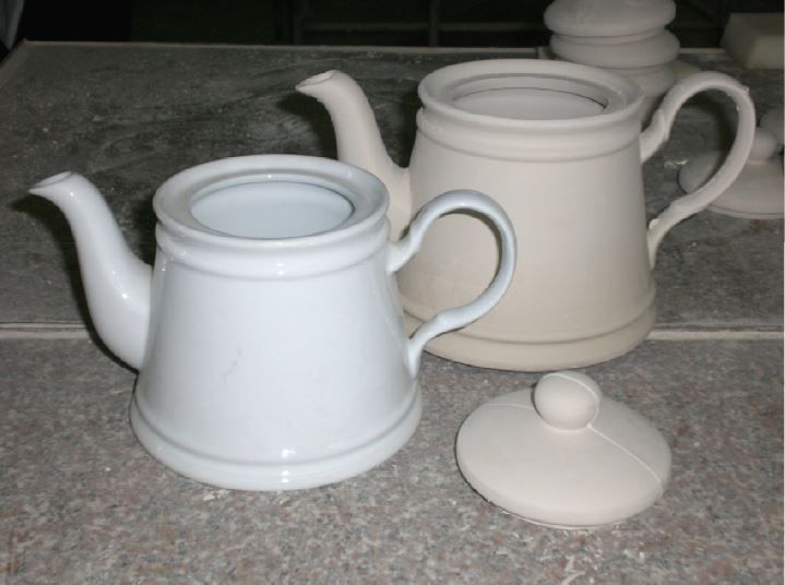 Das Drehen von Porzellanteilen erfolgt durch Überformen oder Einformen.