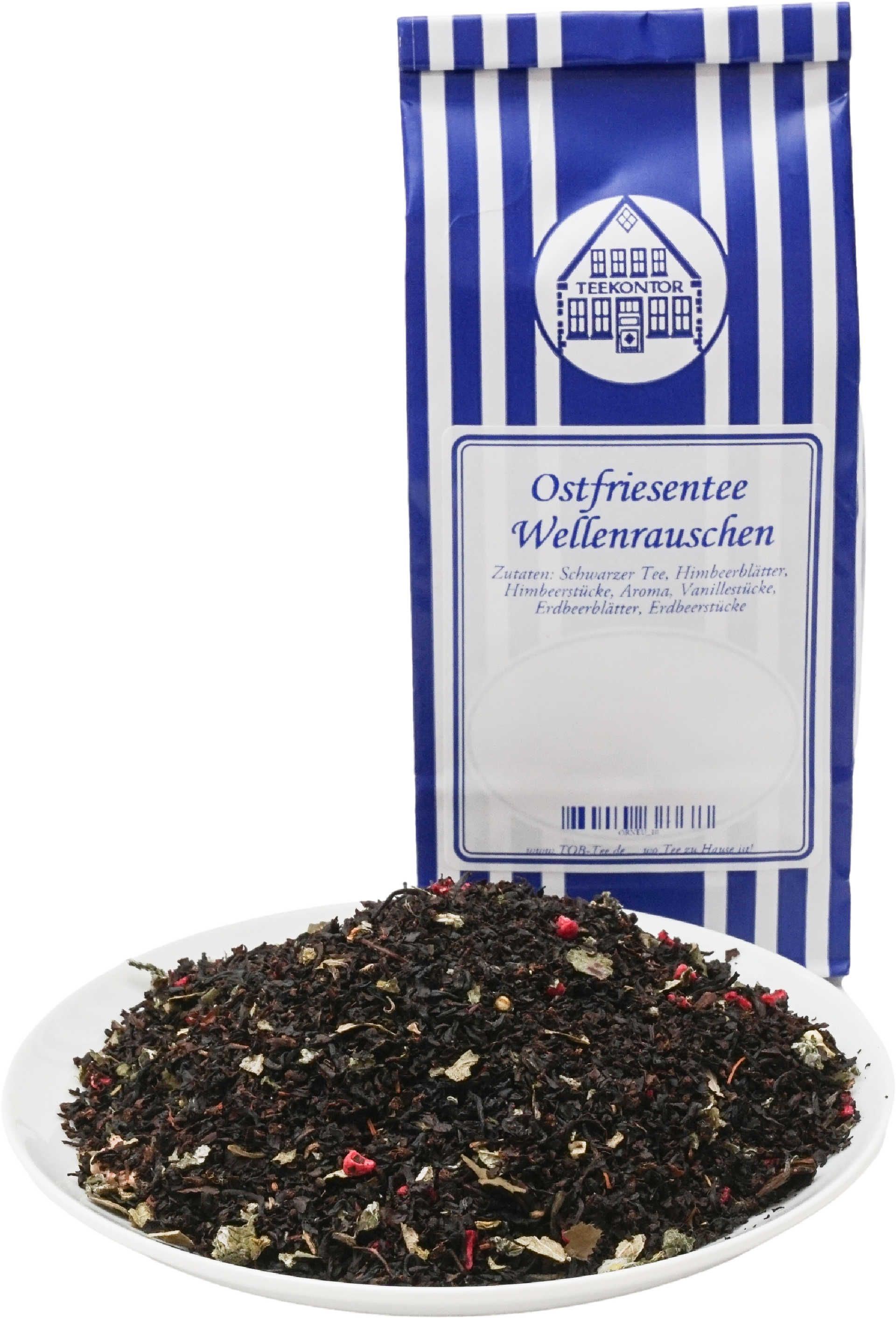 Zutaten: Schwarzer Tee, Himbeerblätter, Himbeerstücke, Aroma, Vanillestücke, Erdbeerblätter, Erdbeerstücke