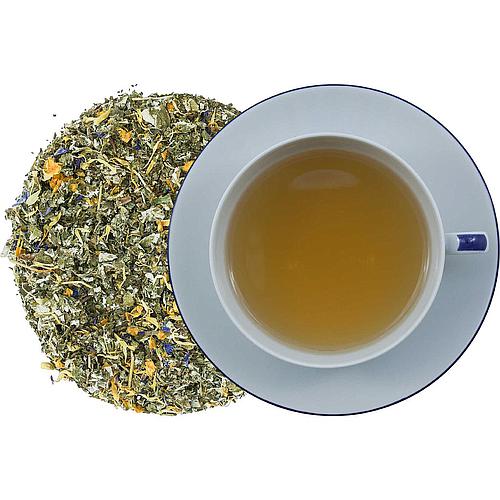 Zutaten: Sanddornbeeren geschnitten 65%, Brombeerblätter, Pfefferminze, Sanddornblätter 10%, Sanddornbeeren 5%, Melisse, Kamillenblüten, Rosen-, Heide-, Lavendelblüten