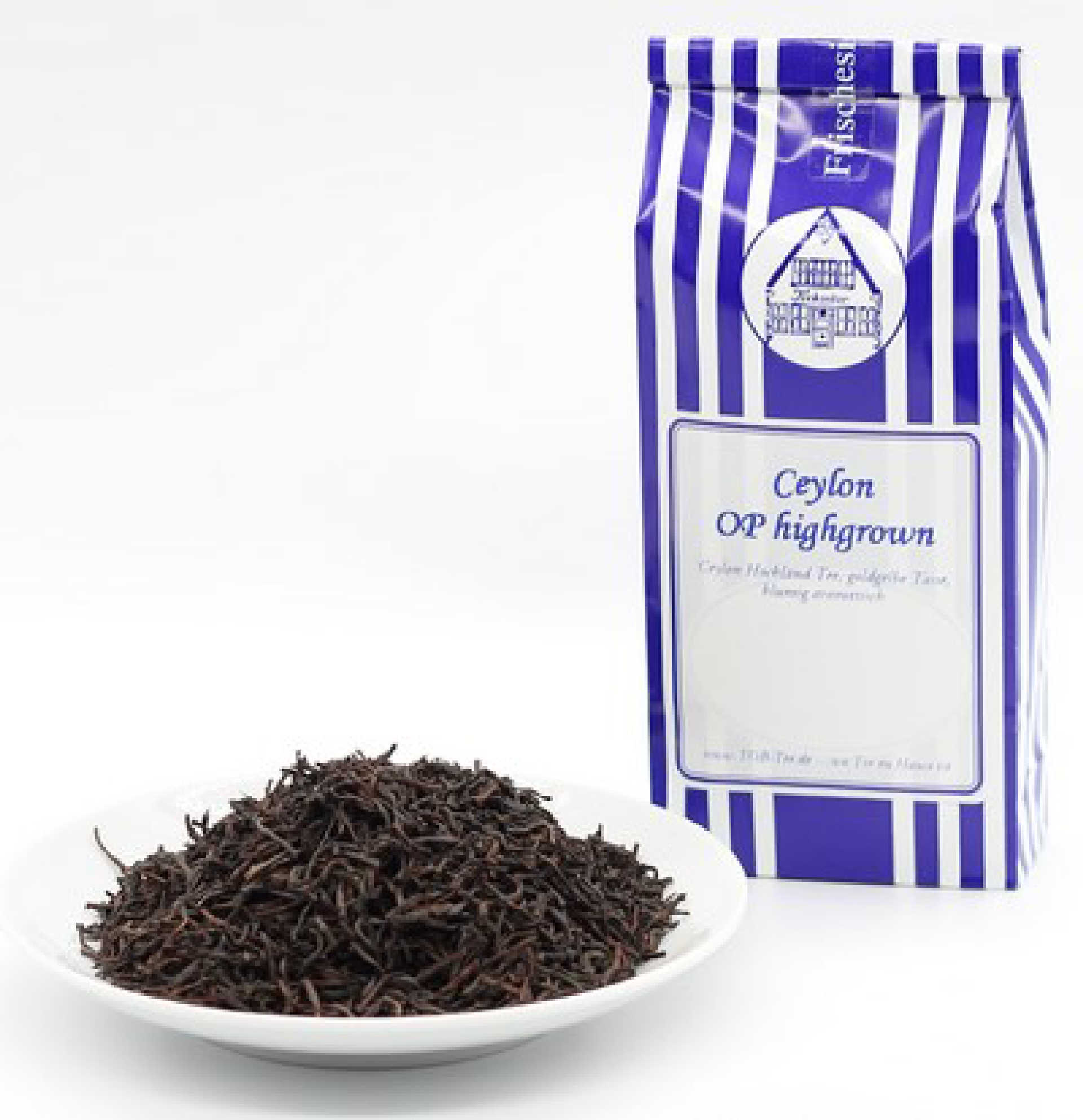 Ceylon Hochland Tee, goldgelbe Tasse, blumig aromatisch