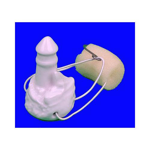 Das Sieb wird unter den Ausguss der Teekanne gehalten, gekippt und der lose Tee verbleibt im Sieb, die Abtropfschale fängt den tropfenden Tee aus dem Sieb