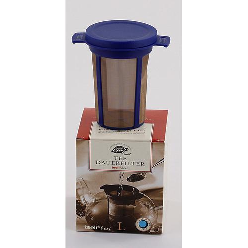 Sieb aus Kunststoff mit feinem Goldfilter, Deckel ist Abtropfschale