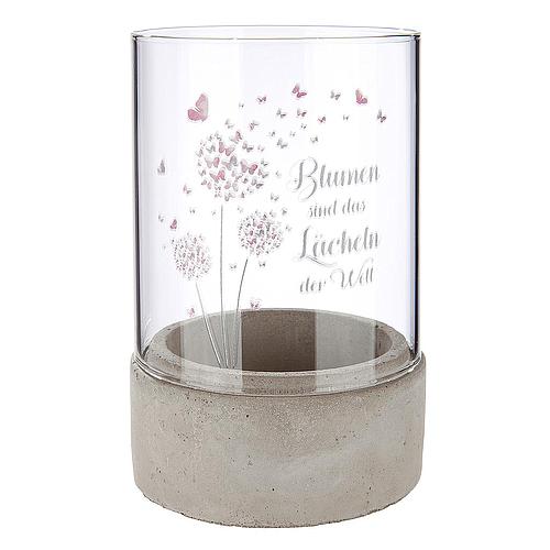 Windlicht "Pusteblume" grau/klar, mit bunten Blumen "Pusteblumen"