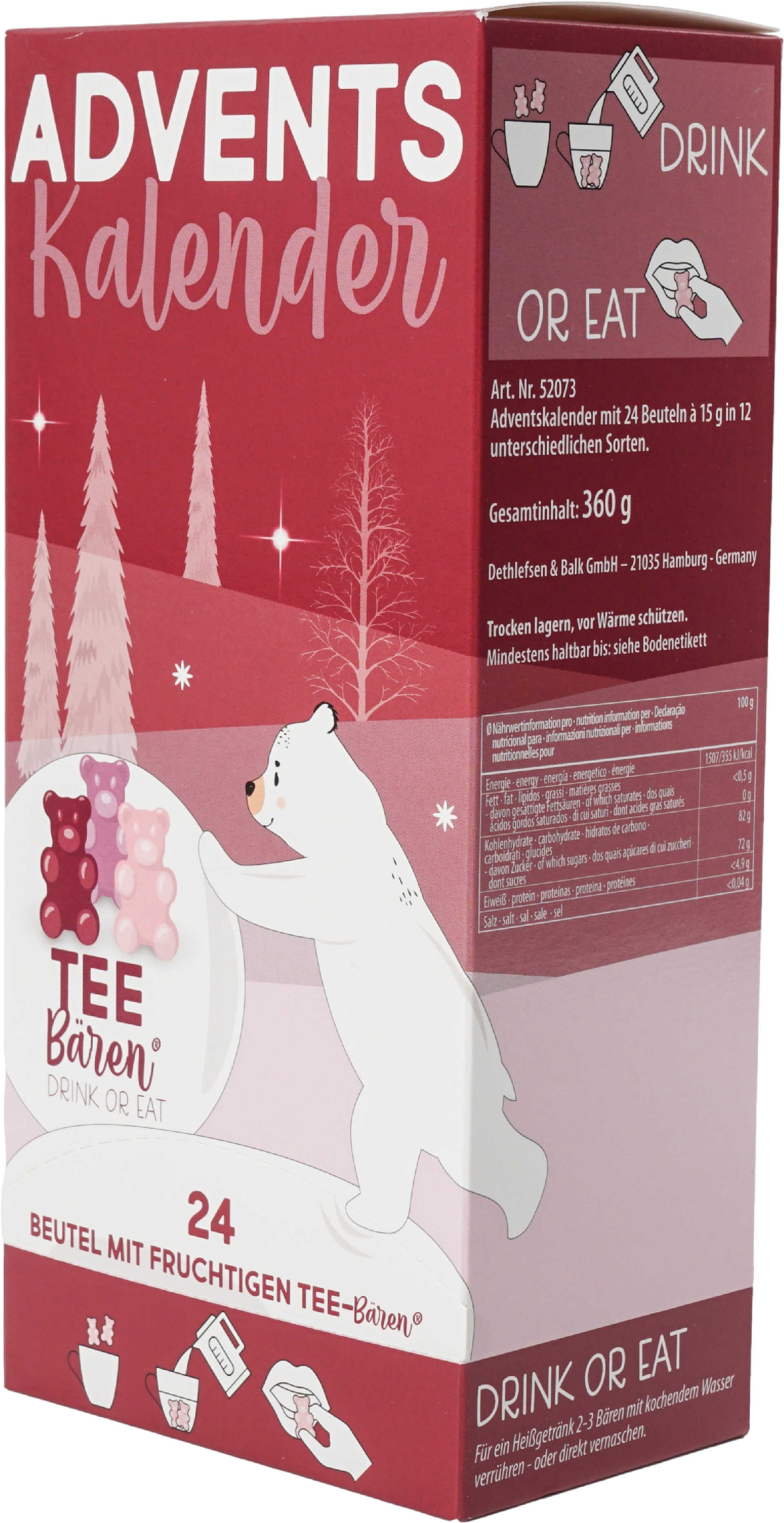 Tee-Bären® Adventskalender 24 x 15 g, Schneekugel einzeln im Sachet verpackt Format 105 x 70 x 225 mm