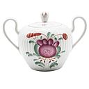 Bestehend aus einer Teekanne 0,75l, Milchkännchen, Zuckerdose, sechs Teetassen, klein, incl. Untere und sechs Tellern 16 cm