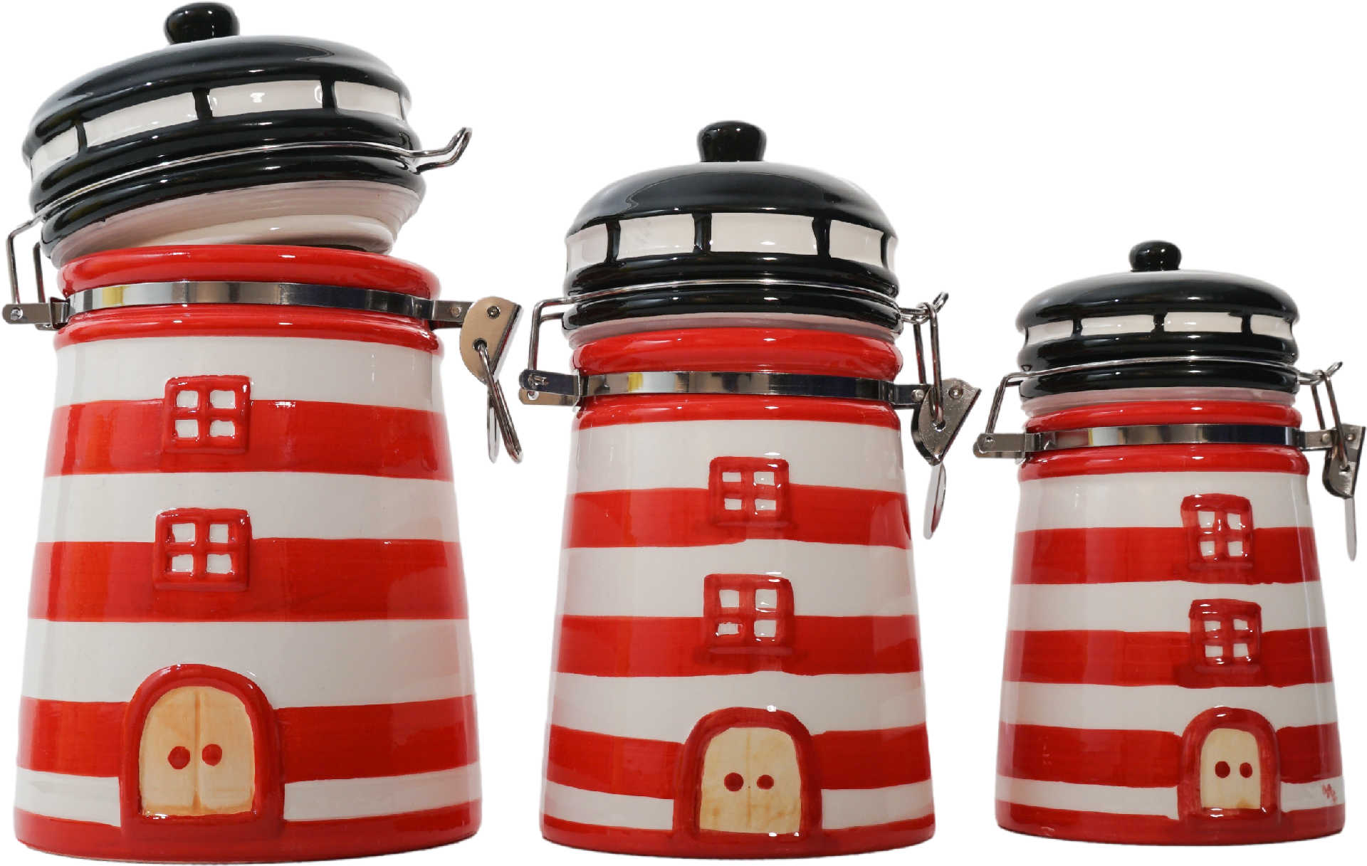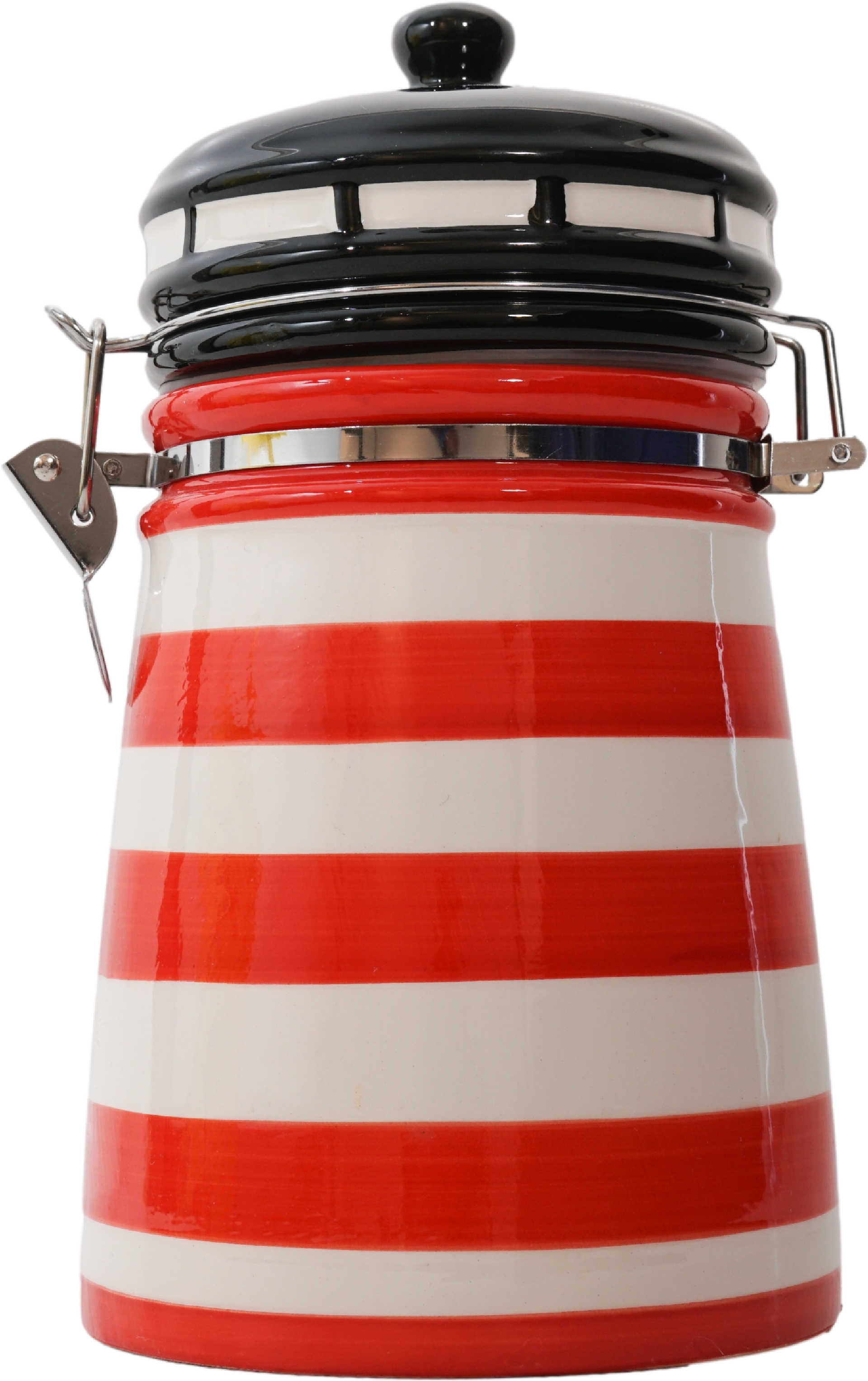 Keramik-Leuchtturmvorratsdose ca. 21.5x11cm rot/weiß 500g