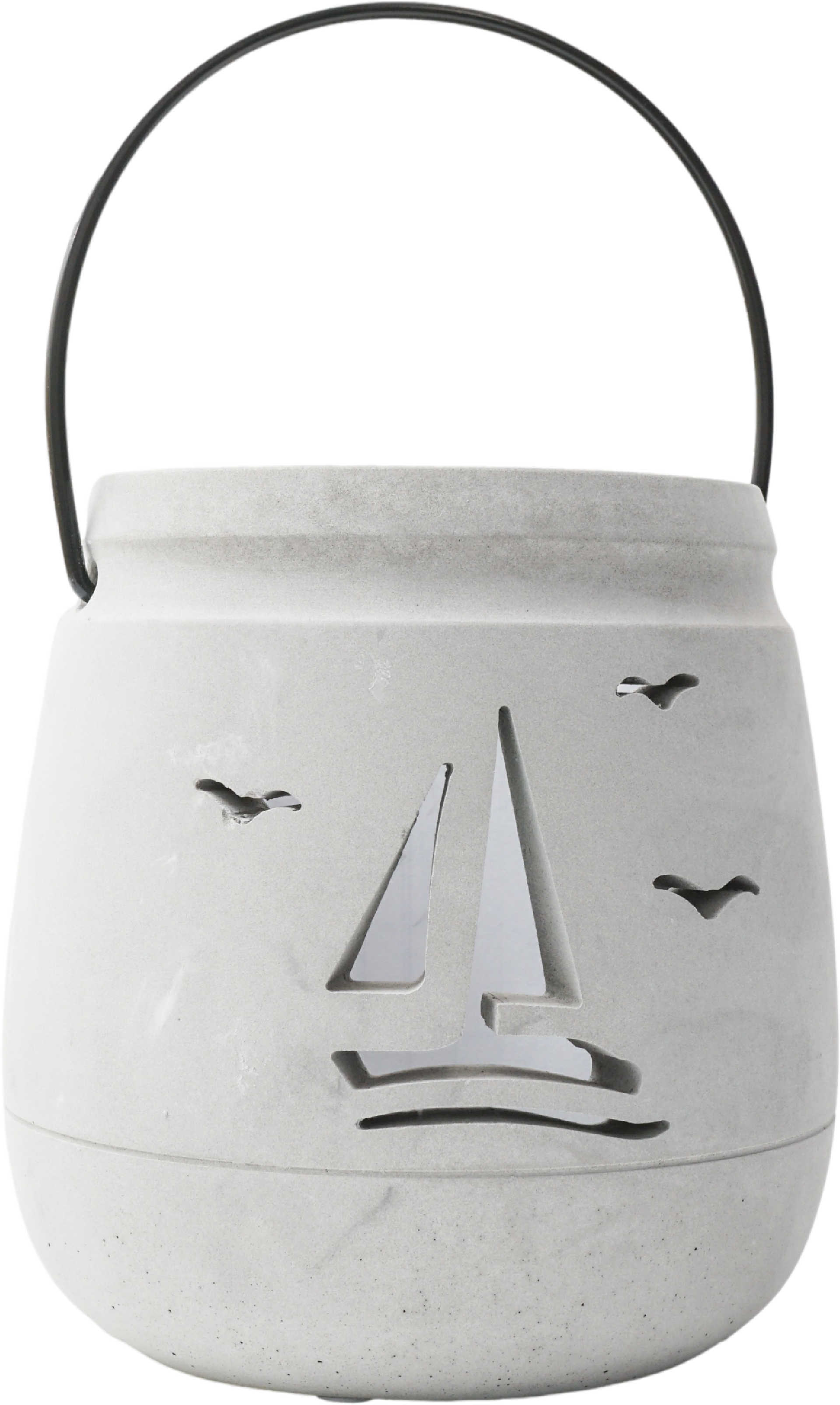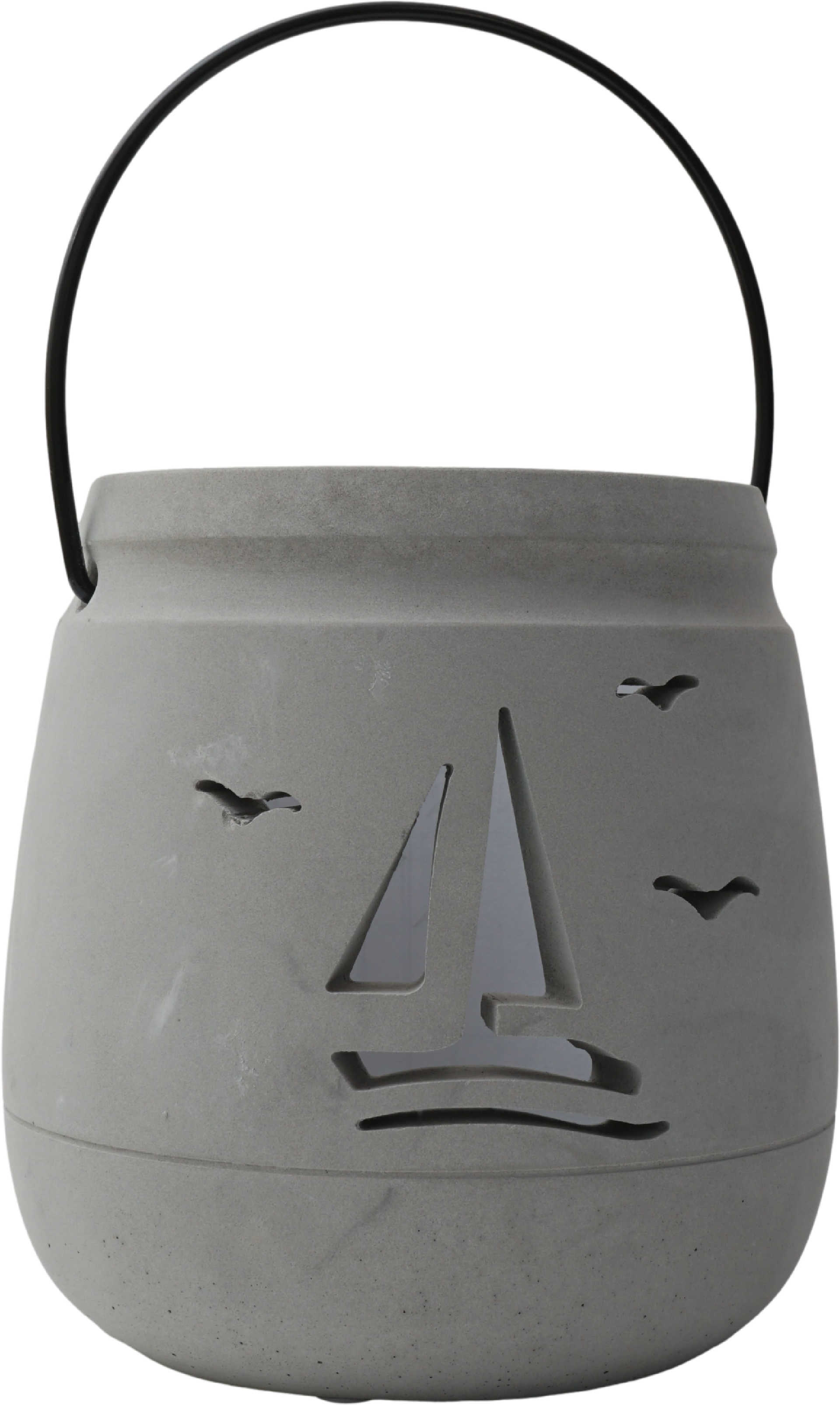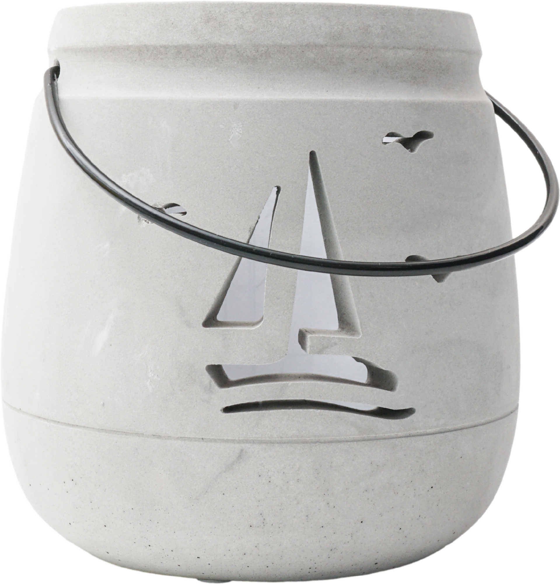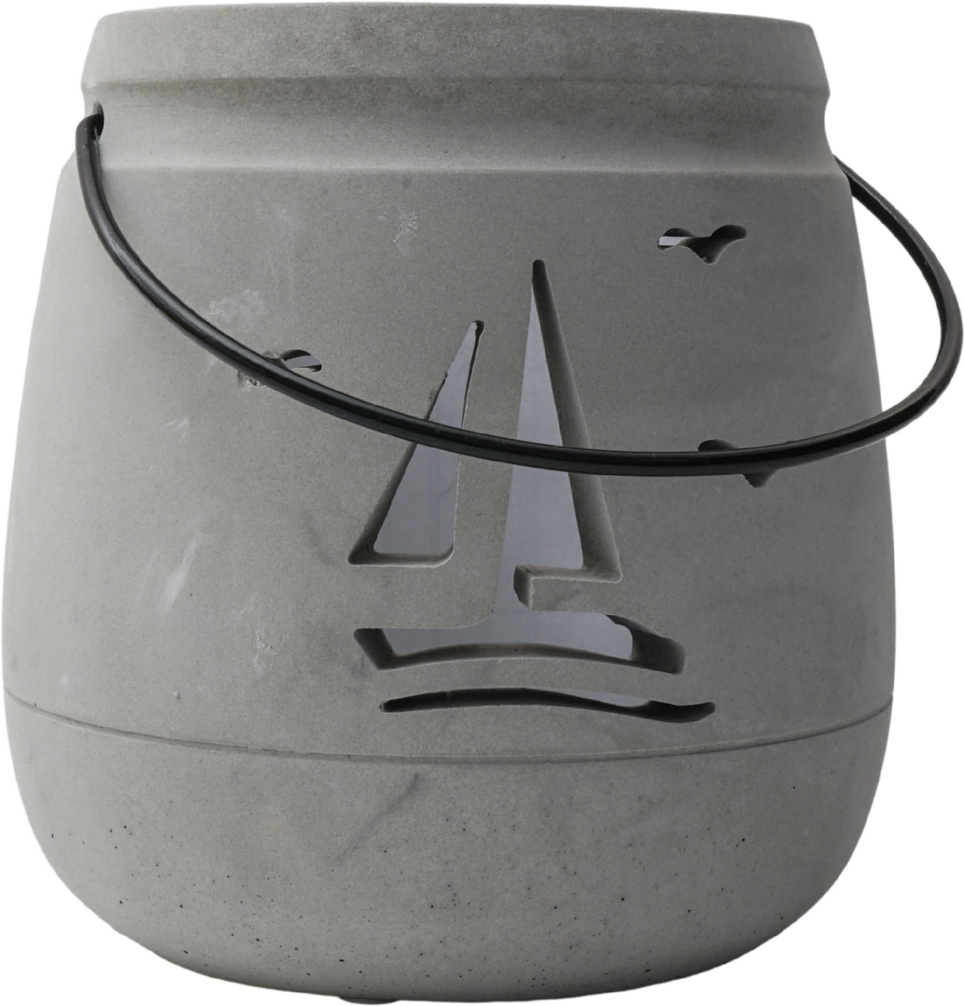 Beton Windlichter Segelschiff/Möwen 12 cm/h grau