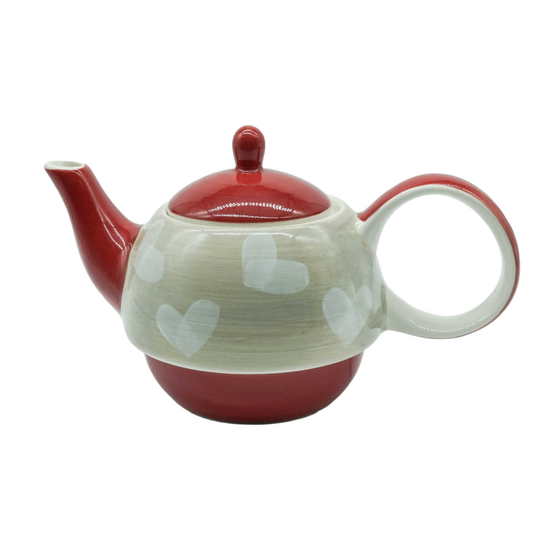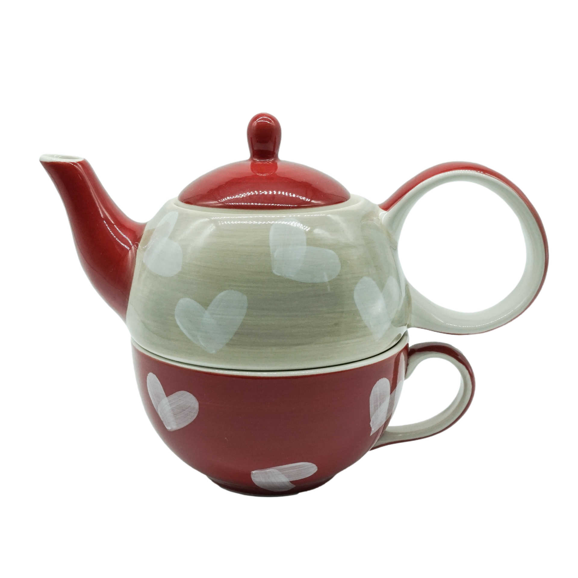 Tea-for-one Set "Corazon" Kanne: 0,4 l, Tasse: 0,2 l, Keramik, 4-teilig, Kanne: H 12 cm, Ø 5,5 cm Tasse: H 6 cm, Ø 10 cm