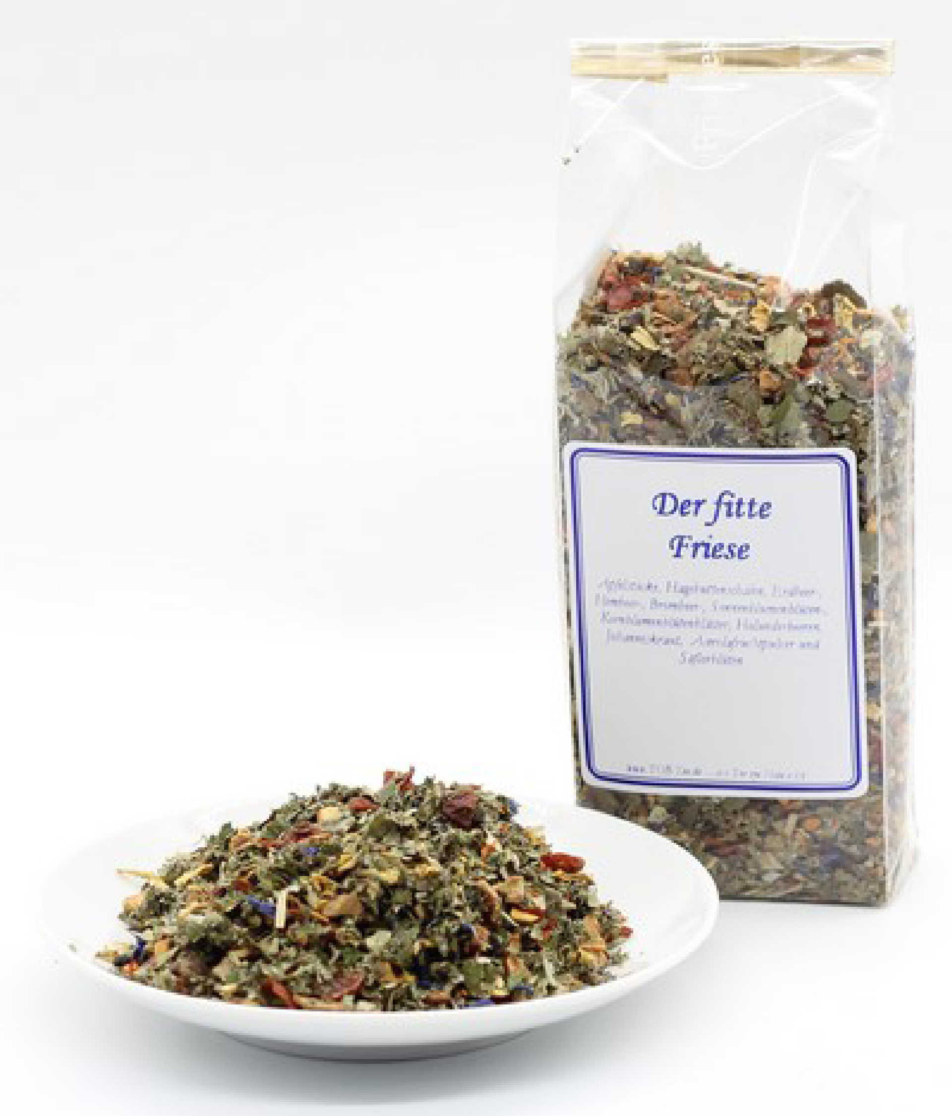 Apfelstücke, Hagebuttenschalen, Erdbeer-, Himbeer-, Brombeer-, Sonnenblumenblüten-, Kornblumenblütenblätter, Holunderbeeren, Johanniskraut, Acerolafruchtpulver (LACTOSE) und Saflorblüten